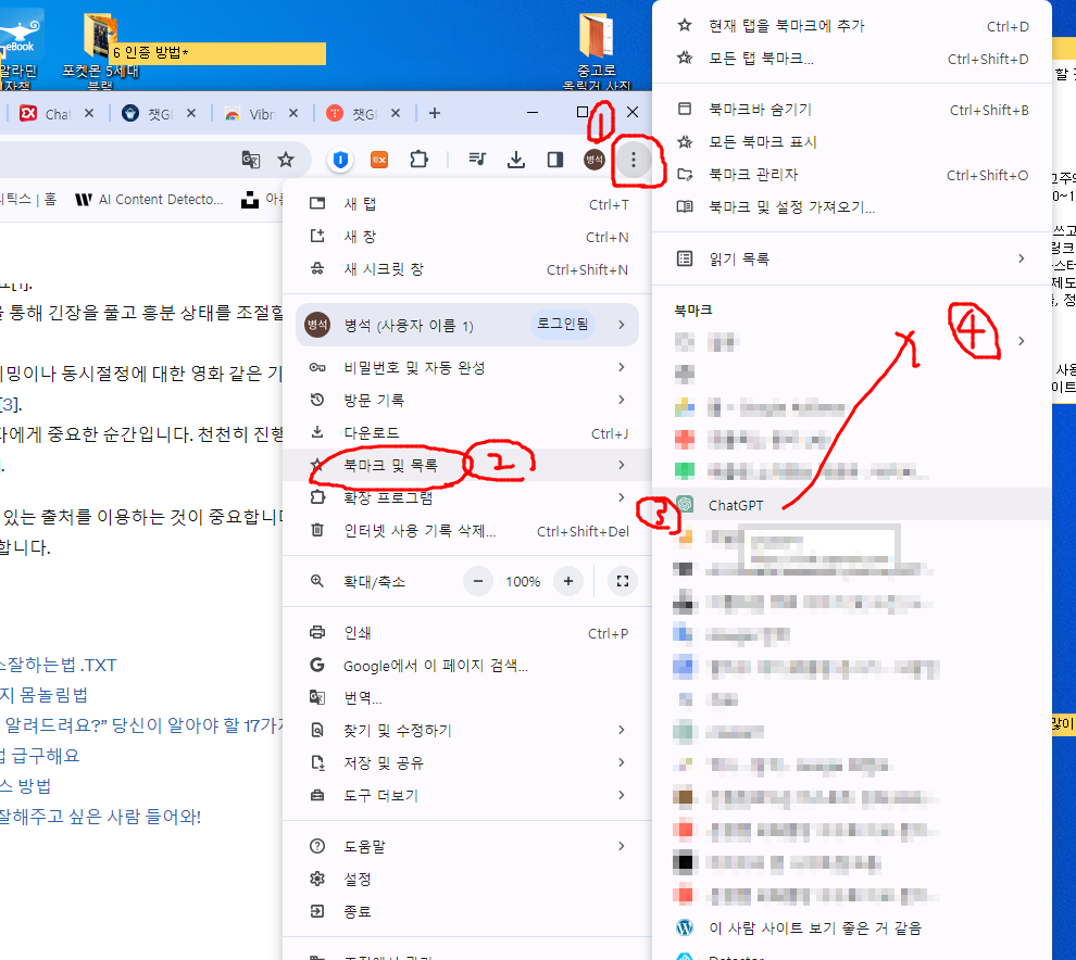 gpt 창 띄워놓고 세로 점3개 클릭 ➡ 북마크 및 목록 ➡ 북마크 되어 있는 gpt를 드래그앤 드롭!! 바탕화면으로 끌고 갑니다. 그럼 아이콘이 생성됩니다. 앞으로 그것만 클릭!!!